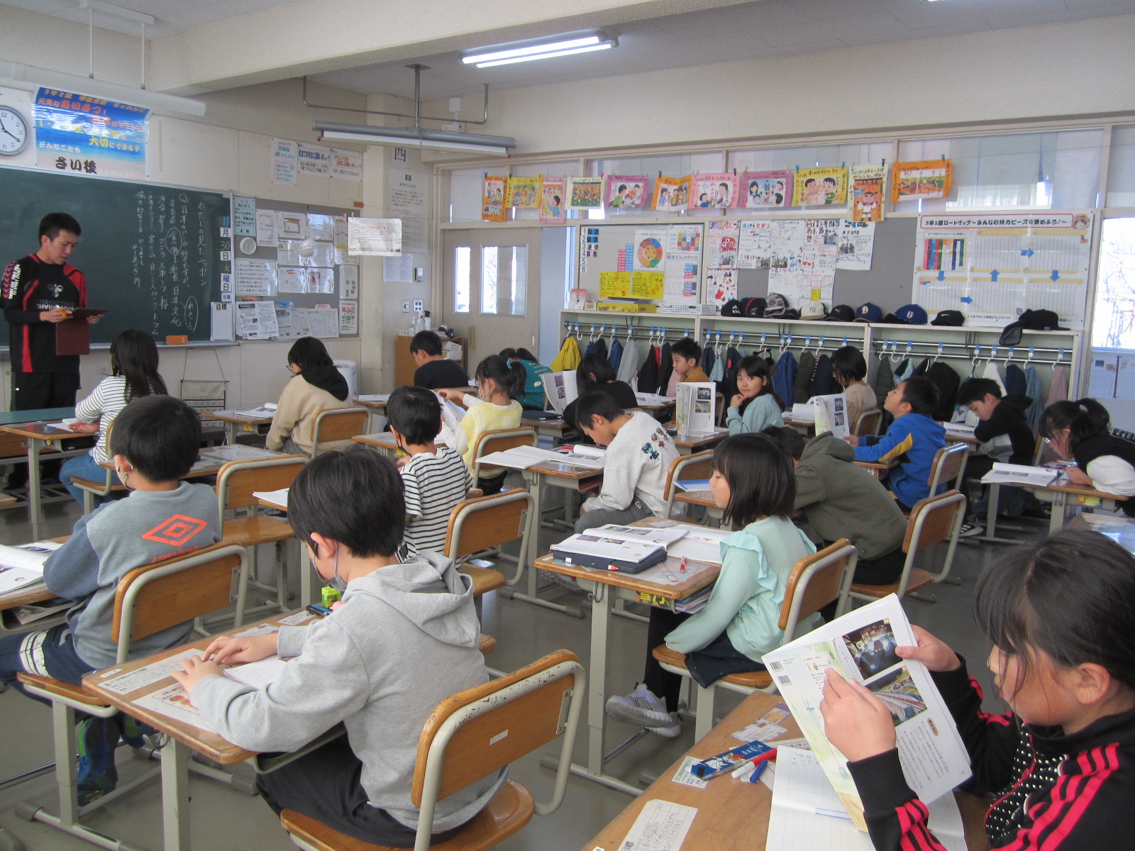 今日の子供たちの様子です。1年生はタブレットの機能を使う練習の場面です。動画を撮って先生に提出するなど使える機能が増えてきています。3年生は総合の学習で今調べていることを実際に先生方にインタビューに来ました。最初の挨拶や質問など丁寧にしっかり話すことができました。まとめの完成が楽しみです。4年生は体育の学習で表現運動を学習しています。グループになって相談しながら動きをつくっています。6年生は栄養教諭の食に関する指導の場面です。栄養について一緒に学習しました。インフルエンザや風邪症状で体調を崩している子供たちが増えています。食事、睡眠、うがいや手洗い、マスク着用など予防対策をしっかりおこなっていきましょう!