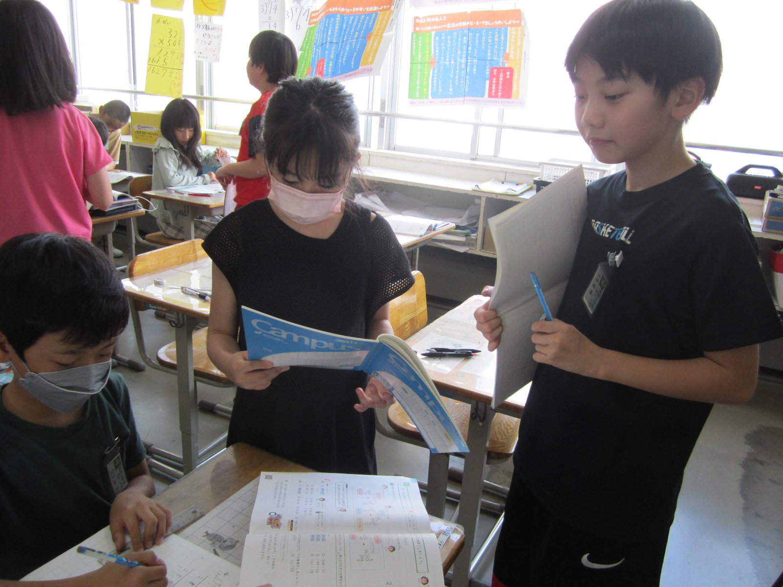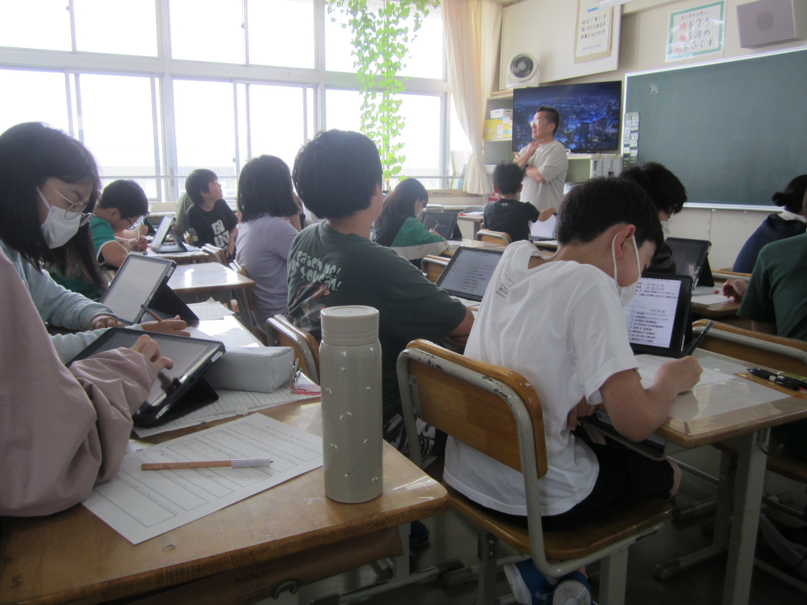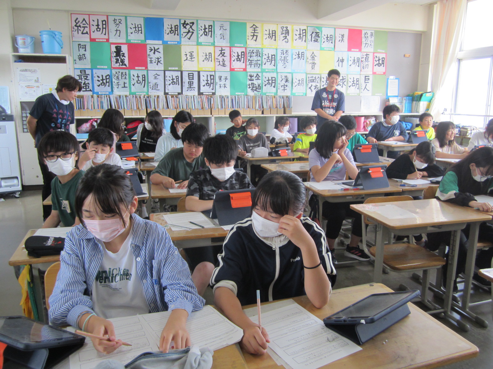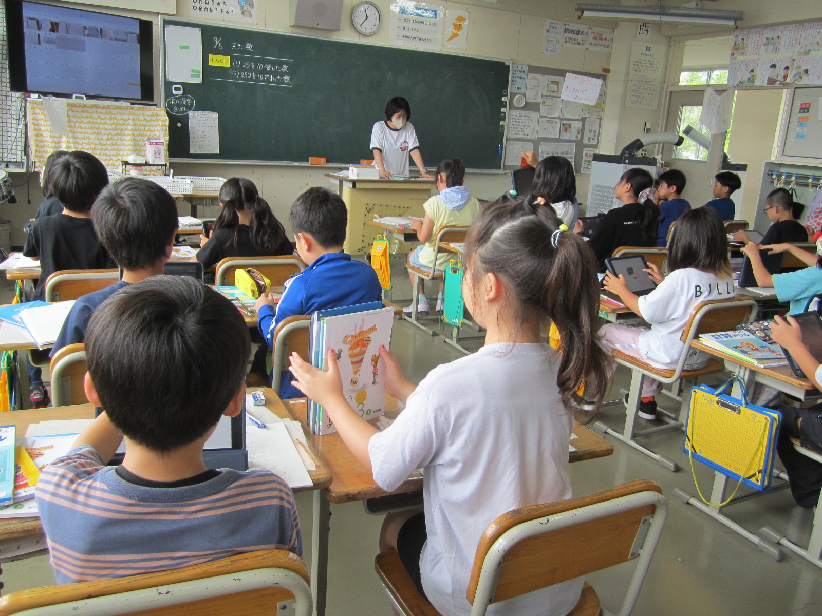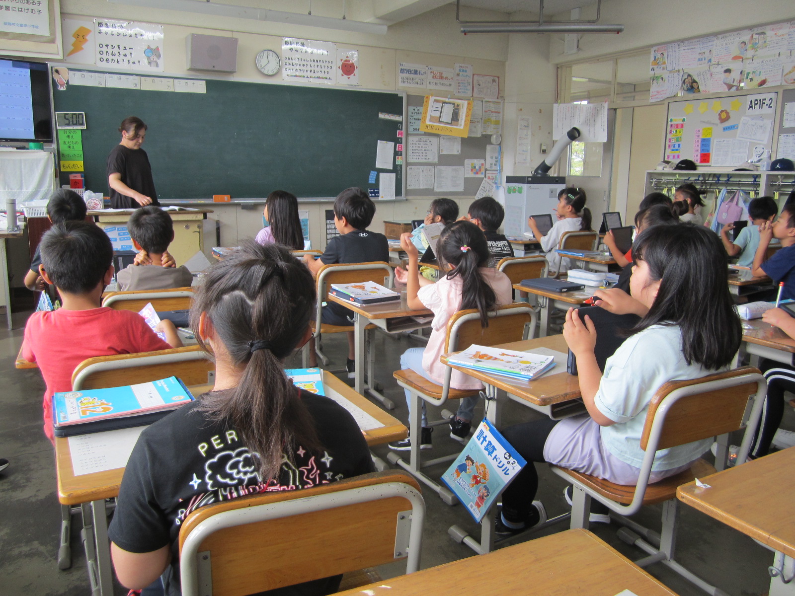 1年生は漢字練習、物語教材の学習をしているところです。2年生は算数の学習で繰り上がりのあるたし算や繰り下がりのあるひき算の学習をしています。3年生は社会の学習で町探検にいきました。お店の方にいろいろと質問をして、学んできました。4年生は道徳の様子です。5年生は理科専科、外国語専科と先生と一緒に学習です。6年生は社会の学習の様子と総合の学習の様子です。総合ではキャリア教育で地域のプロフェッショナルの方に来ていただき仕事について、将来に向けて、夢についてなどお話をしていただきました。今回は美容師さんです。お忙しい中大変ありがとうございました。