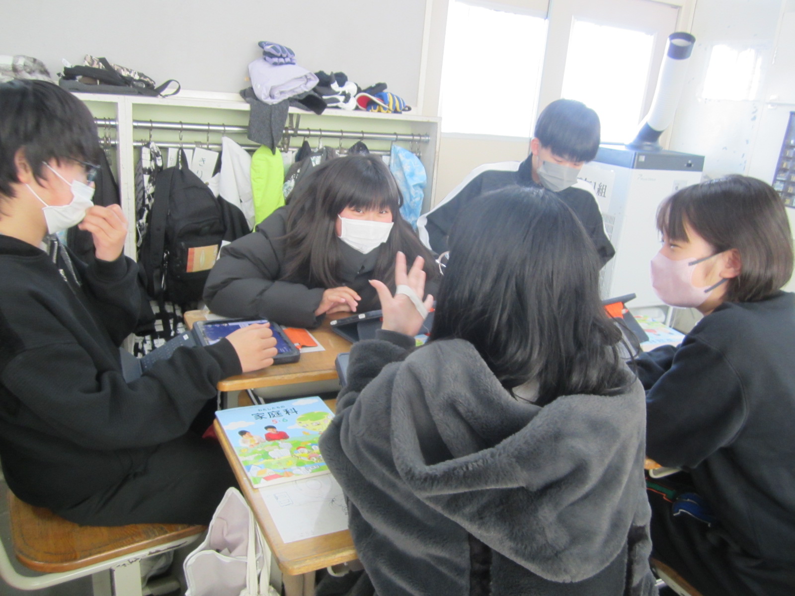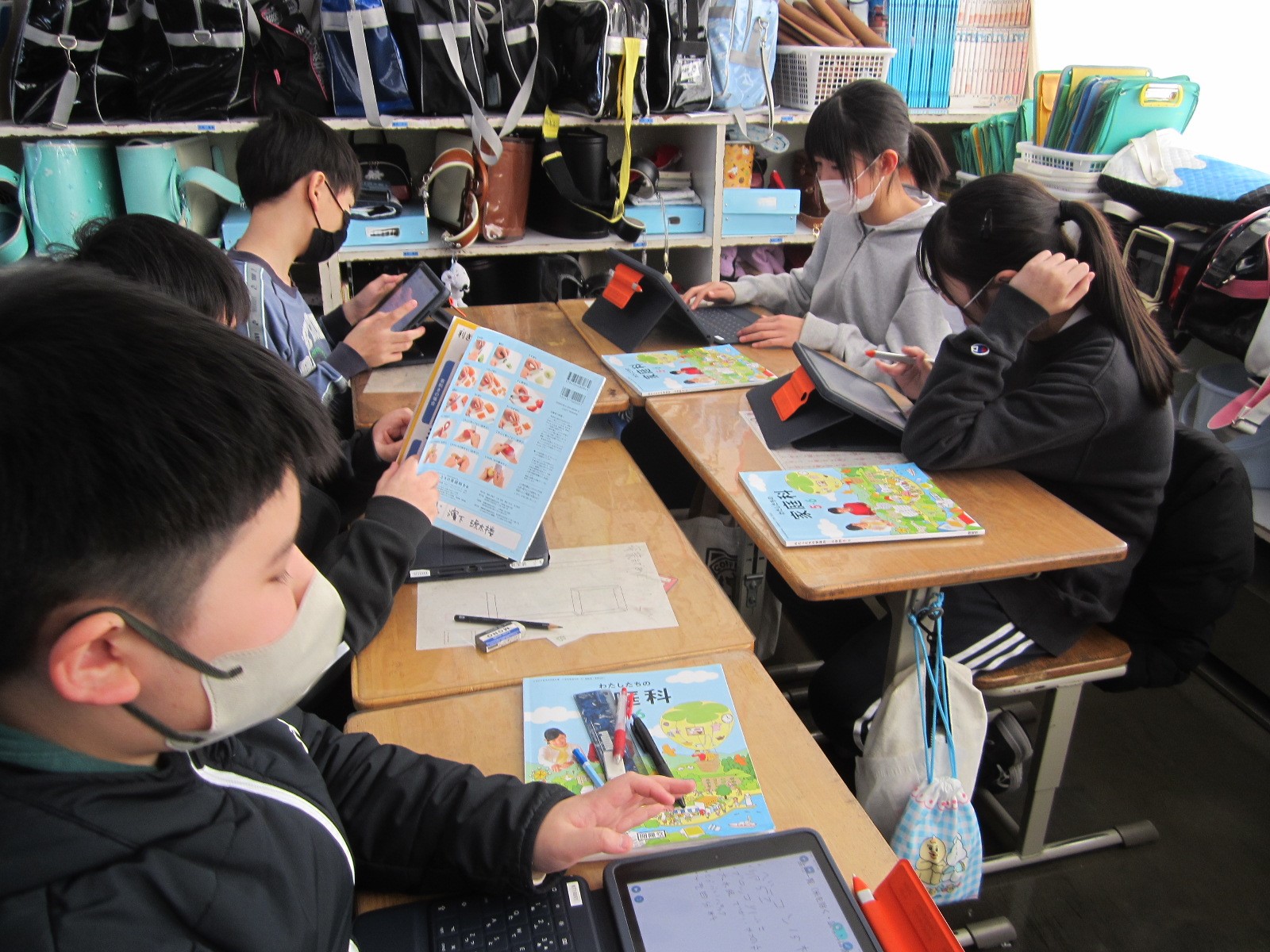 今日の子供たちの様子(1月17日) 2025/1/17 2025年1月 今日の子供たちの様子です。3年生は理科、社会科の学習をしているところです。4年生は国語で詩の学習です。イメージマップを活用したりしてイメージを膨らませ詩を書いています。5年生は算数の学習です。6年生は家庭科です。調理実習に向けての計画をグループごとに行っています。