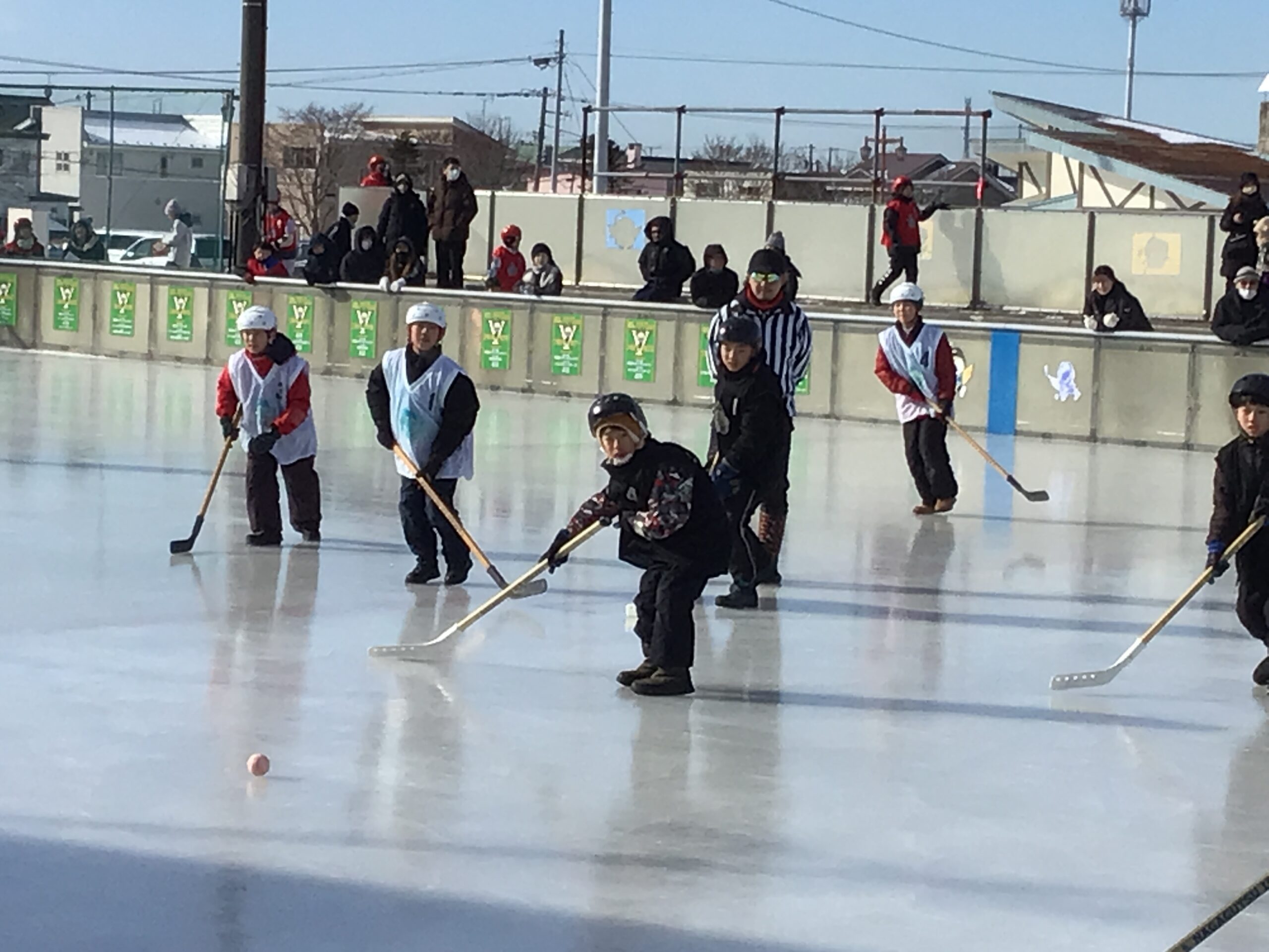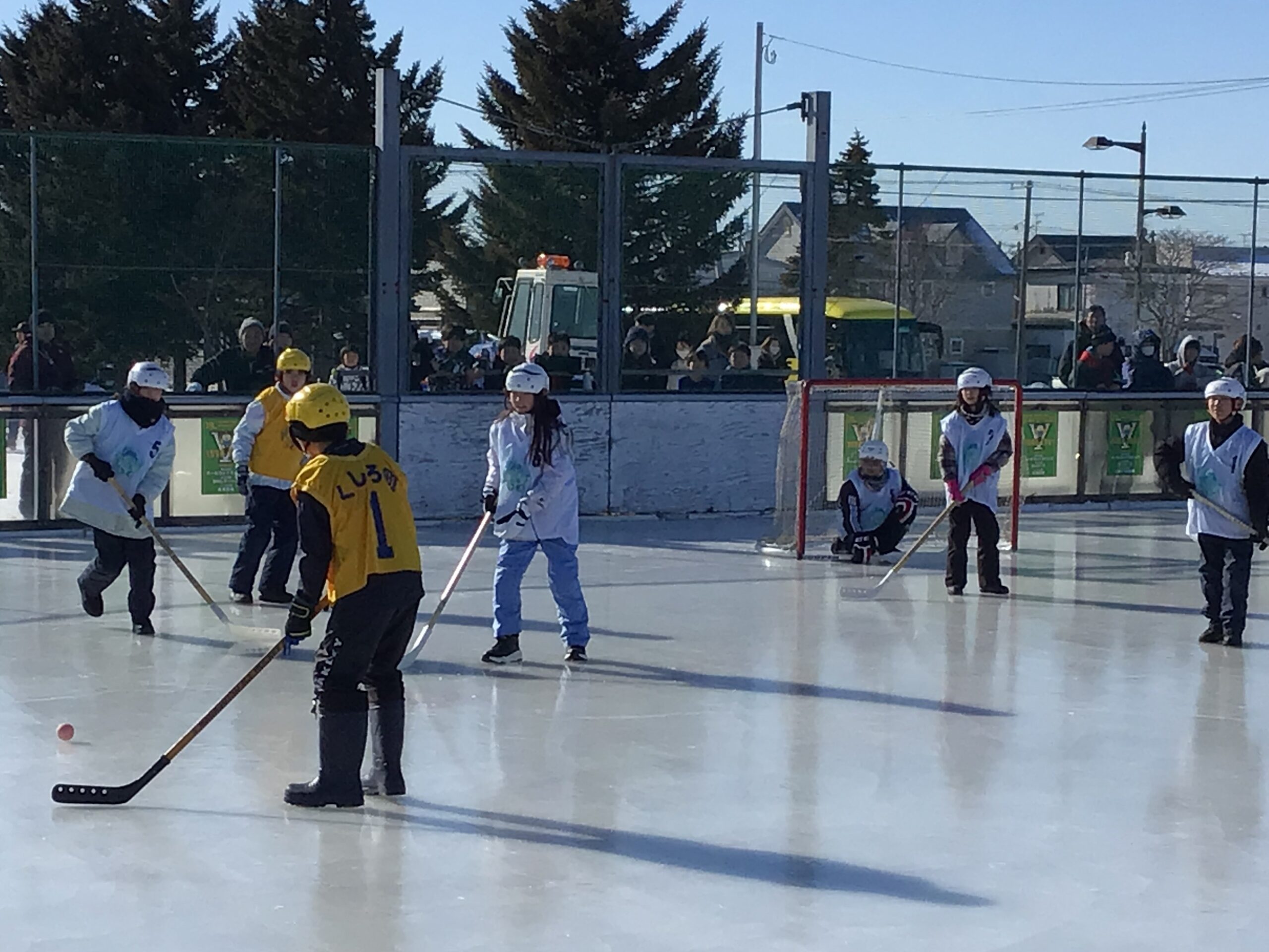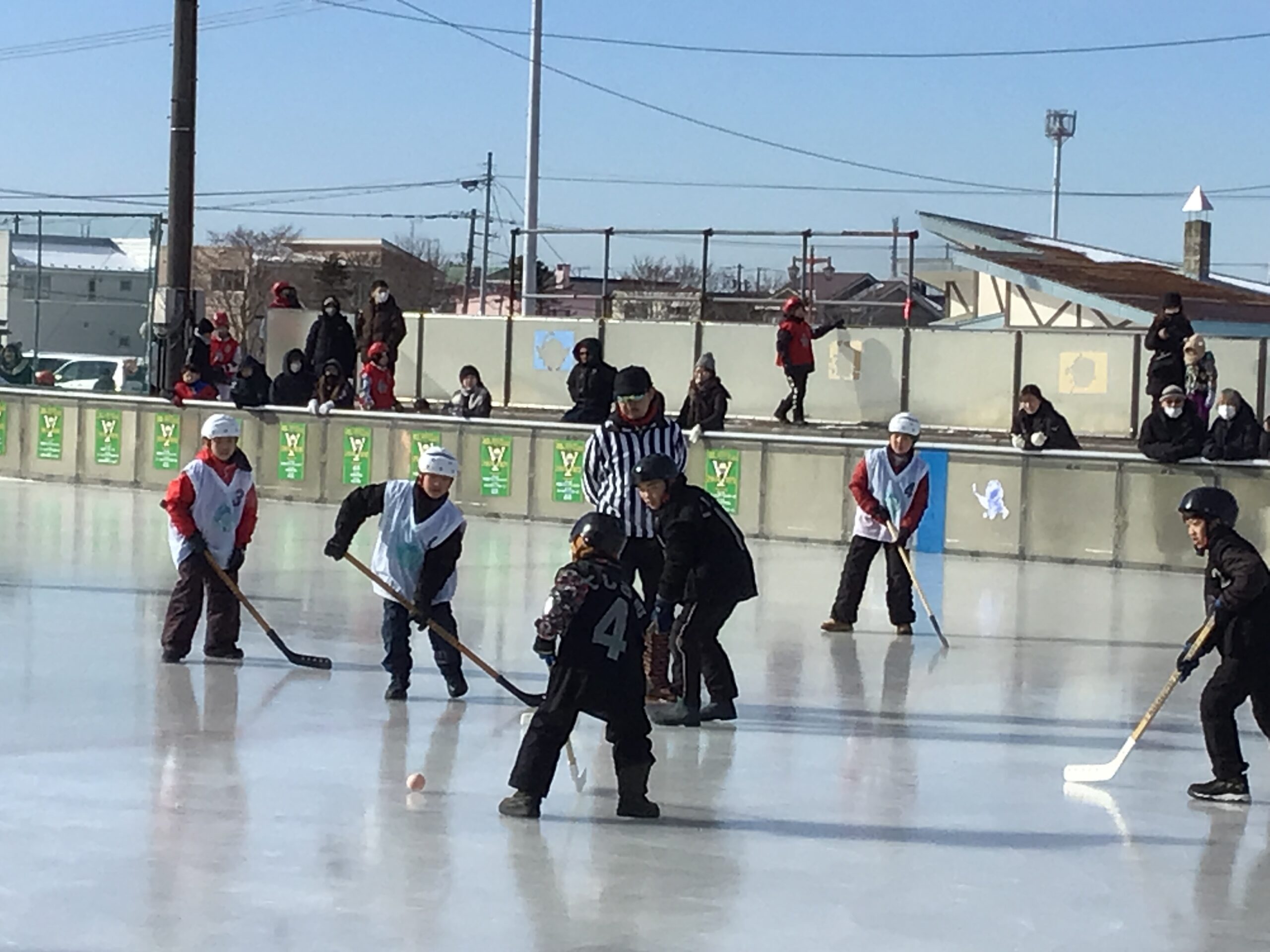 1月24日(土)に、釧路町民長ぐつアイスホッケー大会が開催されました。小学生の部は午前中に開催され、1~3年生で構成される低学年の部には5チームが、4年生以上で構成される高学年の部には3チームが参加しました。