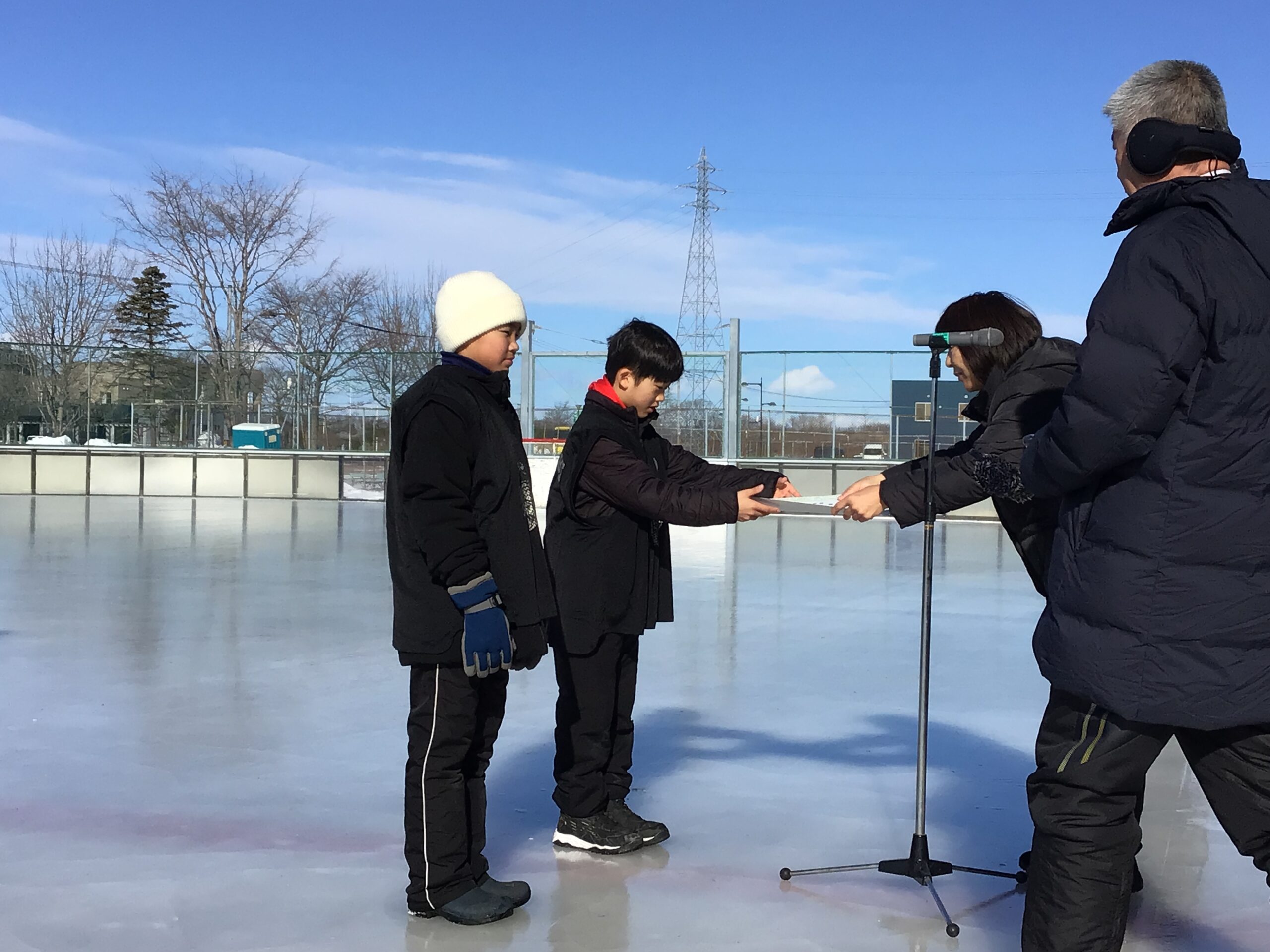 朝はものすごく冷え込み、なんとマイナス15℃ちかくまで下がったのですが、いざ競技が始まると子どもたちの熱気で寒さなんて感じられないほど、熱い戦いが繰り広げられました!