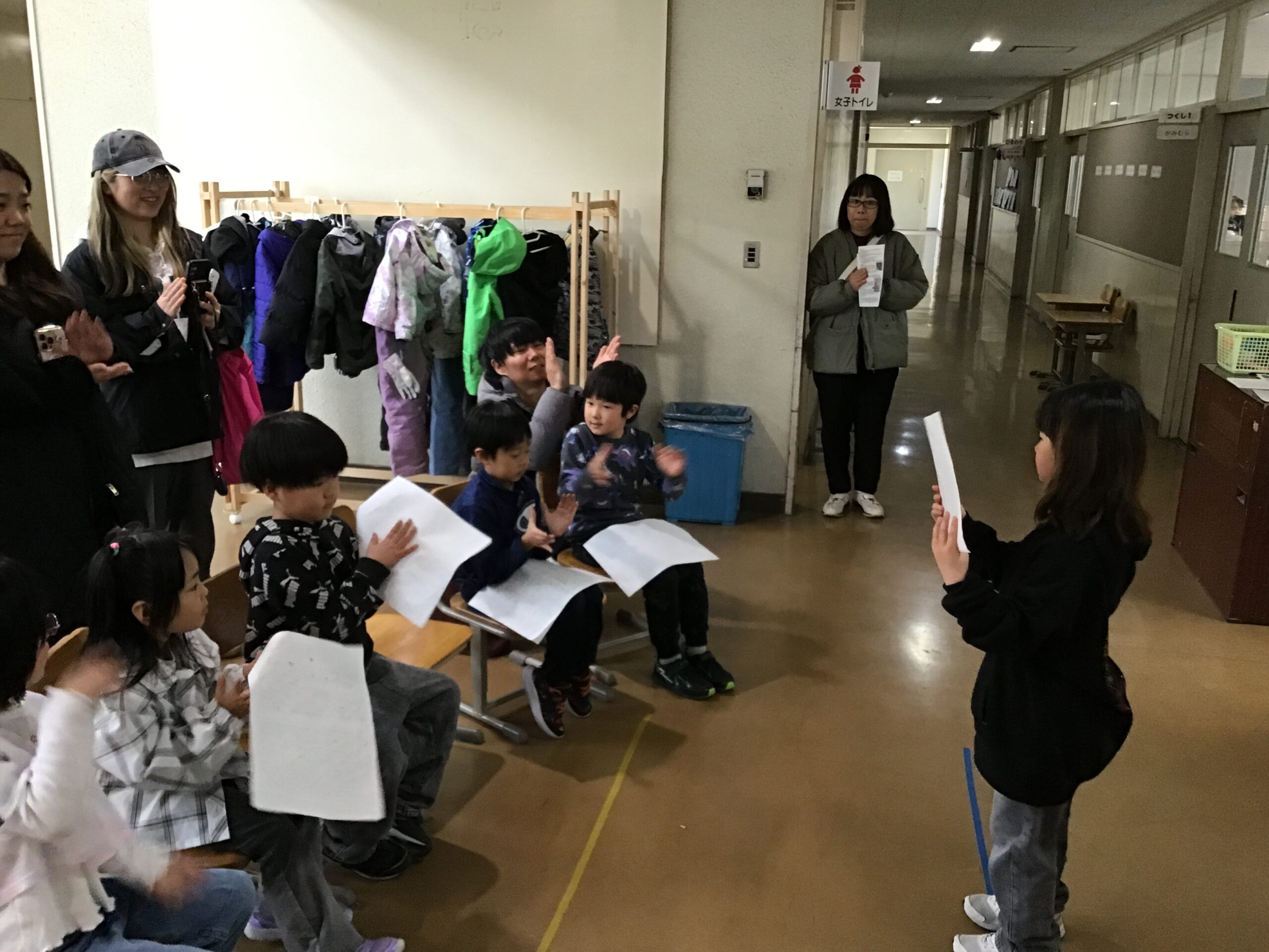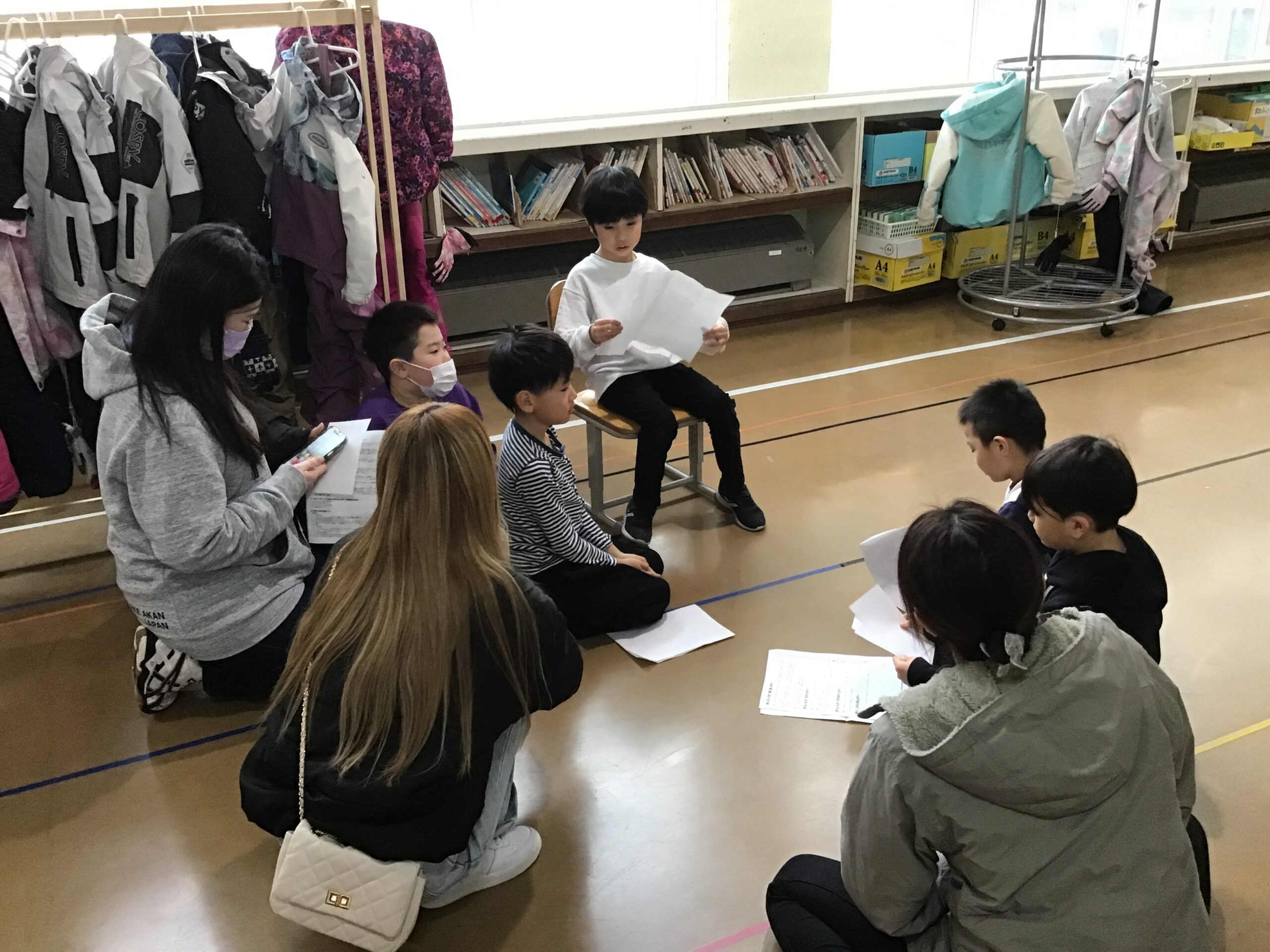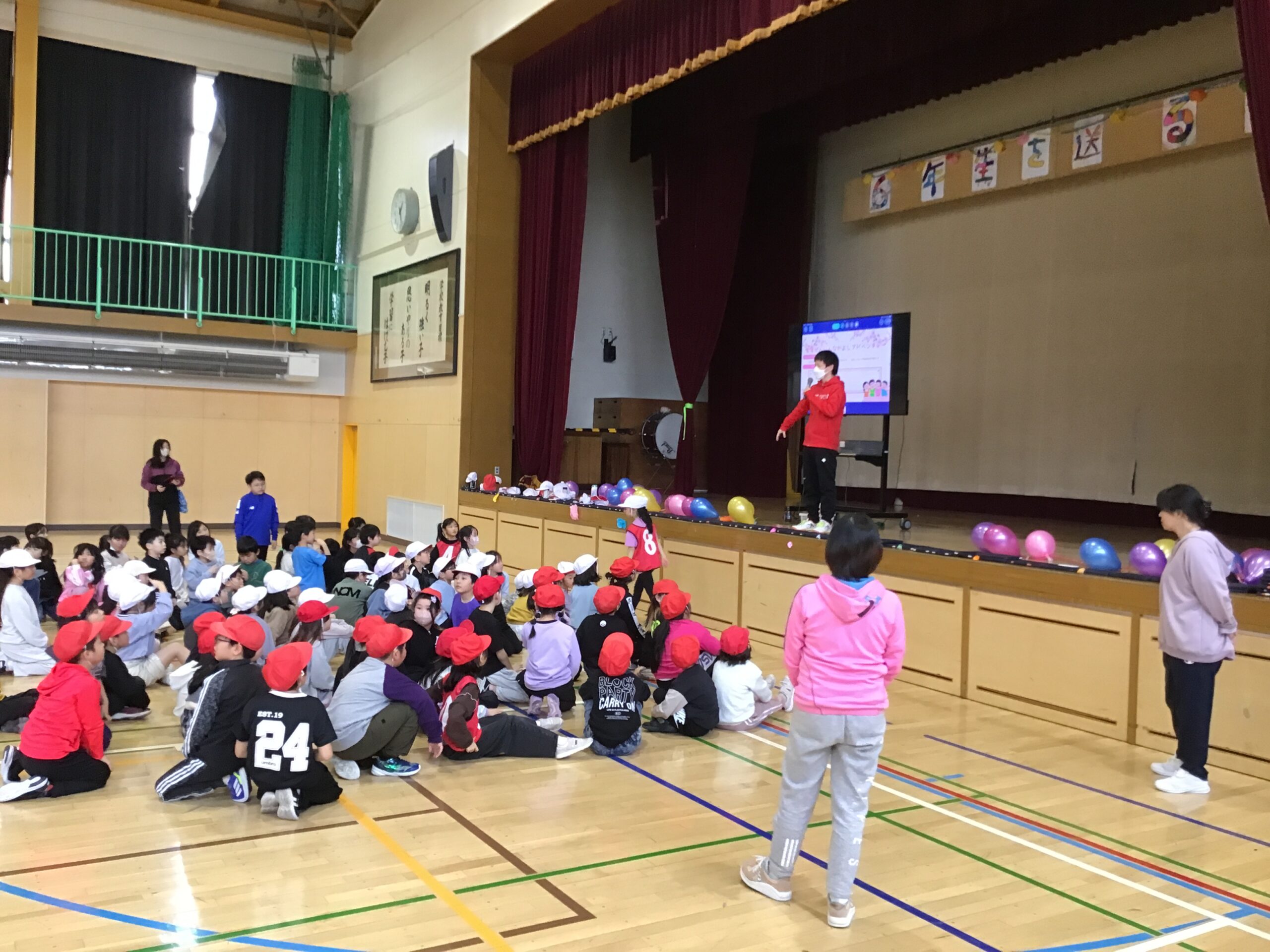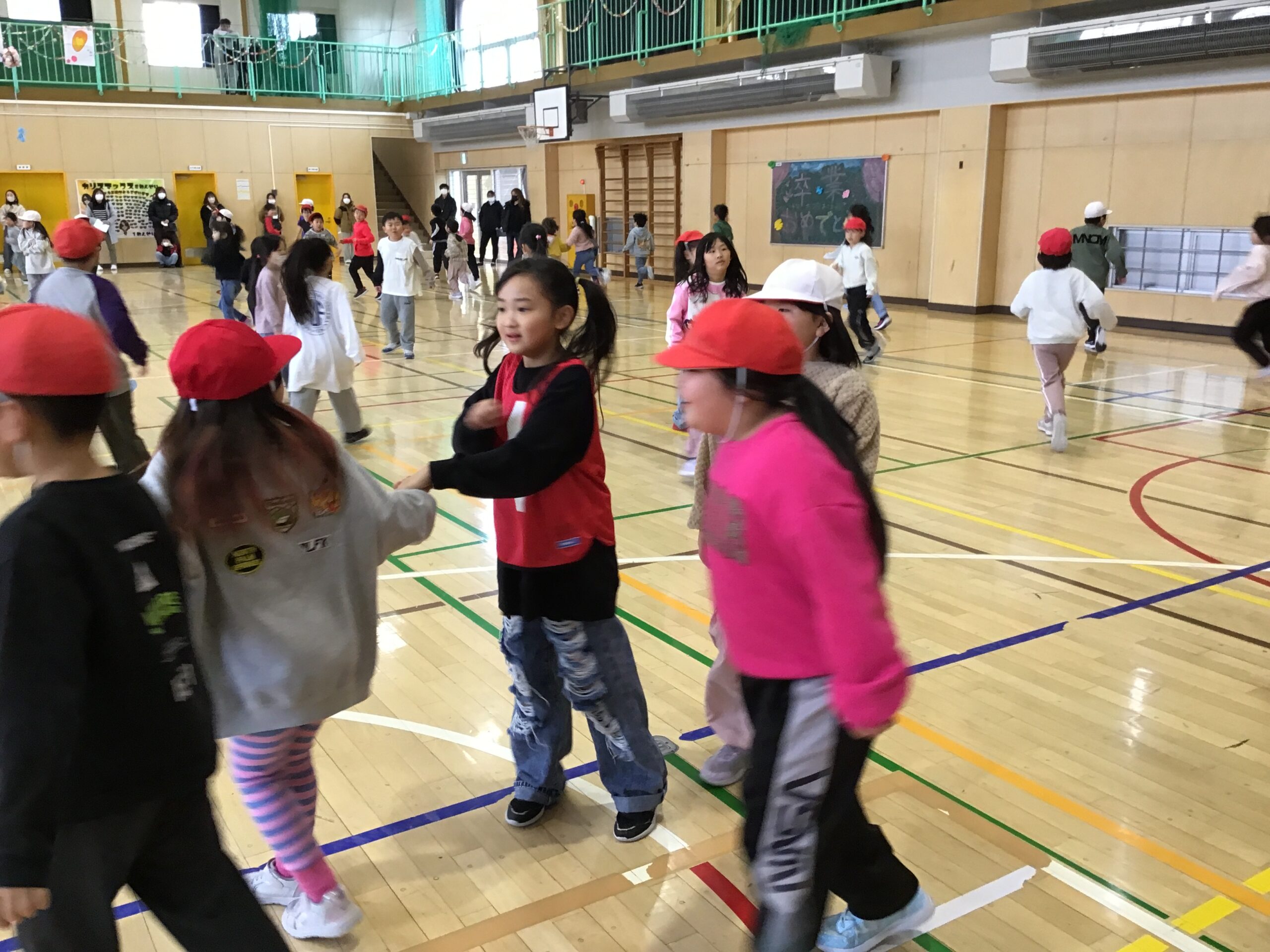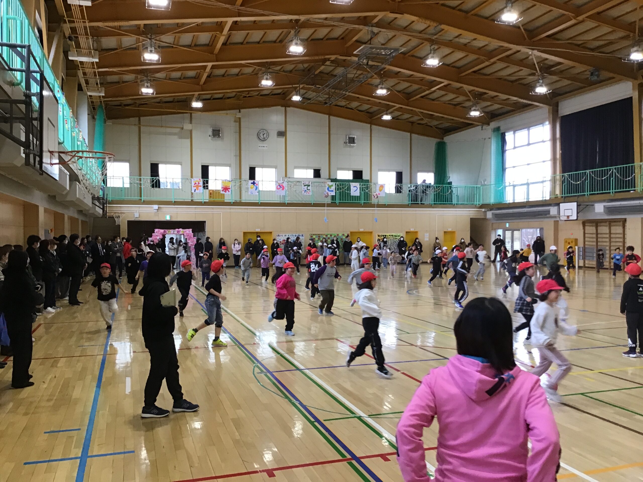 2年生は学年体育を行い、クラスの枠をこえて協力し合う姿をご覧いただきました。春からはクラス替えがありますが、学年全体で仲良く活動する姿から、これまで築いてきたつながりの深さを感じていただけたのではないでしょうか。