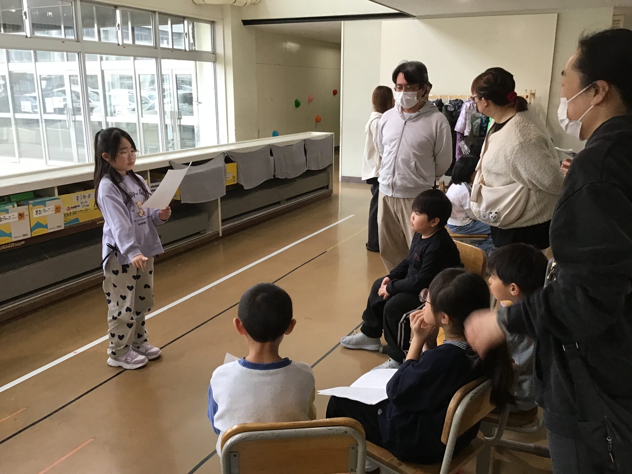 1年生は作文発表会に取り組みました。大勢の前で話すことに緊張しながらも、自分の言葉で思いを伝えようと、一人ひとりが一生懸命に発表する姿がとても印象的でした。話し終えた後のほっとした表情からも、達成感が伝わってきました。